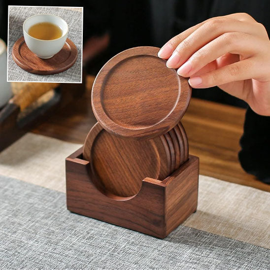 Avant, Julie utilisait des dessous de verre en papier qu'elle devait constamment remplacer. Maintenant, avec son set en bois massif, elle apprécie non seulement leur aspect esthétique mais aussi leur durabilité exceptionnelle.